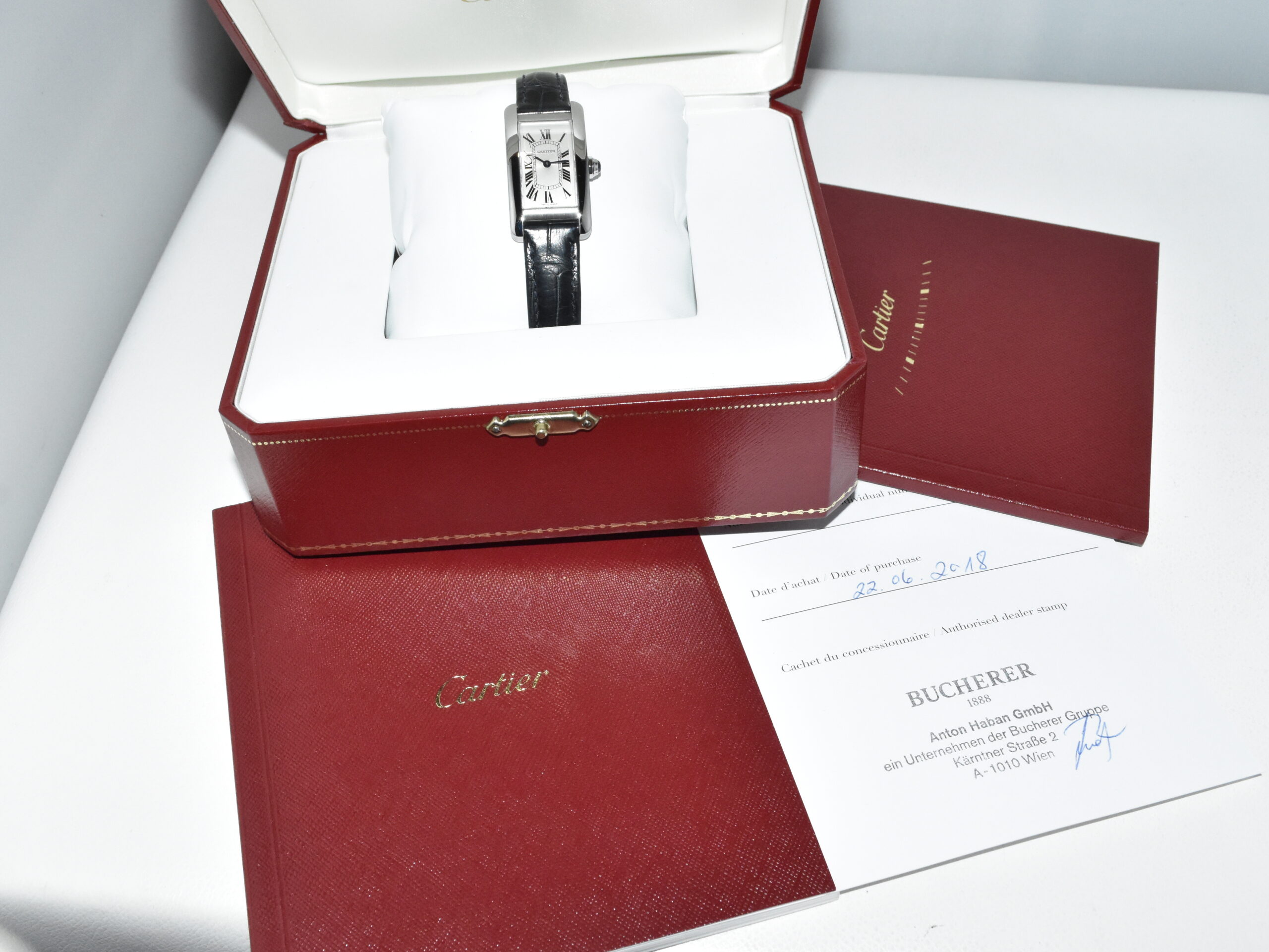 Cartier Tank Americaine WSTA0016, IN NIEUWSTAAT!! Het horloge heeft service gehad in ons Cartier geautoriseerde atelier, komt met de originele Cartier doos en papieren. Iconisch Cartier Tank damesmodel, perfect voor dagelijks gebruik !!