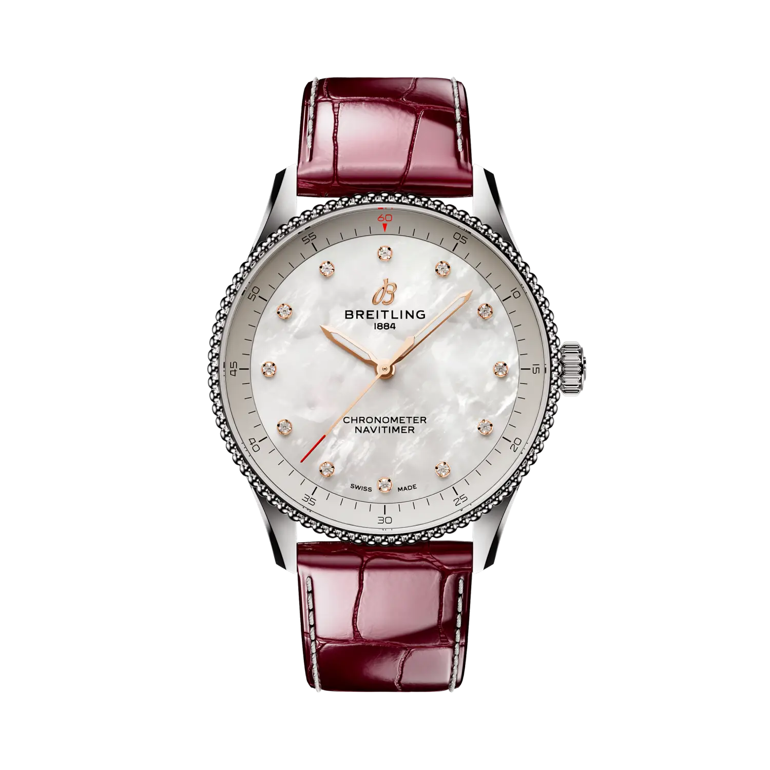 Breitling’s icoon—voor de reis. De Navitimer is een van de meest herkenbare horloges ooit gemaakt. Het staat op verzamelaarslijsten van de grootste horloges aller tijden. Wat in 1952 begon als een hulpmiddel voor piloten, is uitgegroeid tot iets diepzinnigs voor ieder die dit tijdstuk mee heeft genomen op zijn persoonlijke reis. Ons icoon is nu verkrijgbaar in 36 en 32 mm formaten voor vrouwen en mannen die houden van de look en feel van een kleiner diameter horloge. Terwijl de 36-mm Navitimer de geperforeerde bezel en iconische cirkelvormige schuifliniaal heeft die de Navitimer zijn onmiskenbare uiterlijk geven, kiest de oogverblindende 32 mm variant voor een vereenvoudigd wijzerplaatontwerp zonder de schuifliniaal, passend bij zijn slanke diameter. Maar deze showstoppers bieden veel meer dan alleen hun slanke nieuwe afmetingen. Accenten in pastelkleuren, parelmoer en traceerbare edelmetalen combineren met subtiele verfijningen om de horloges een juwelenachtige aantrekkingskracht te geven—een veelzijdige elegantie aan het legendarische navigatiehorloge dat klaar is voor waar de reis je ook brengt.
