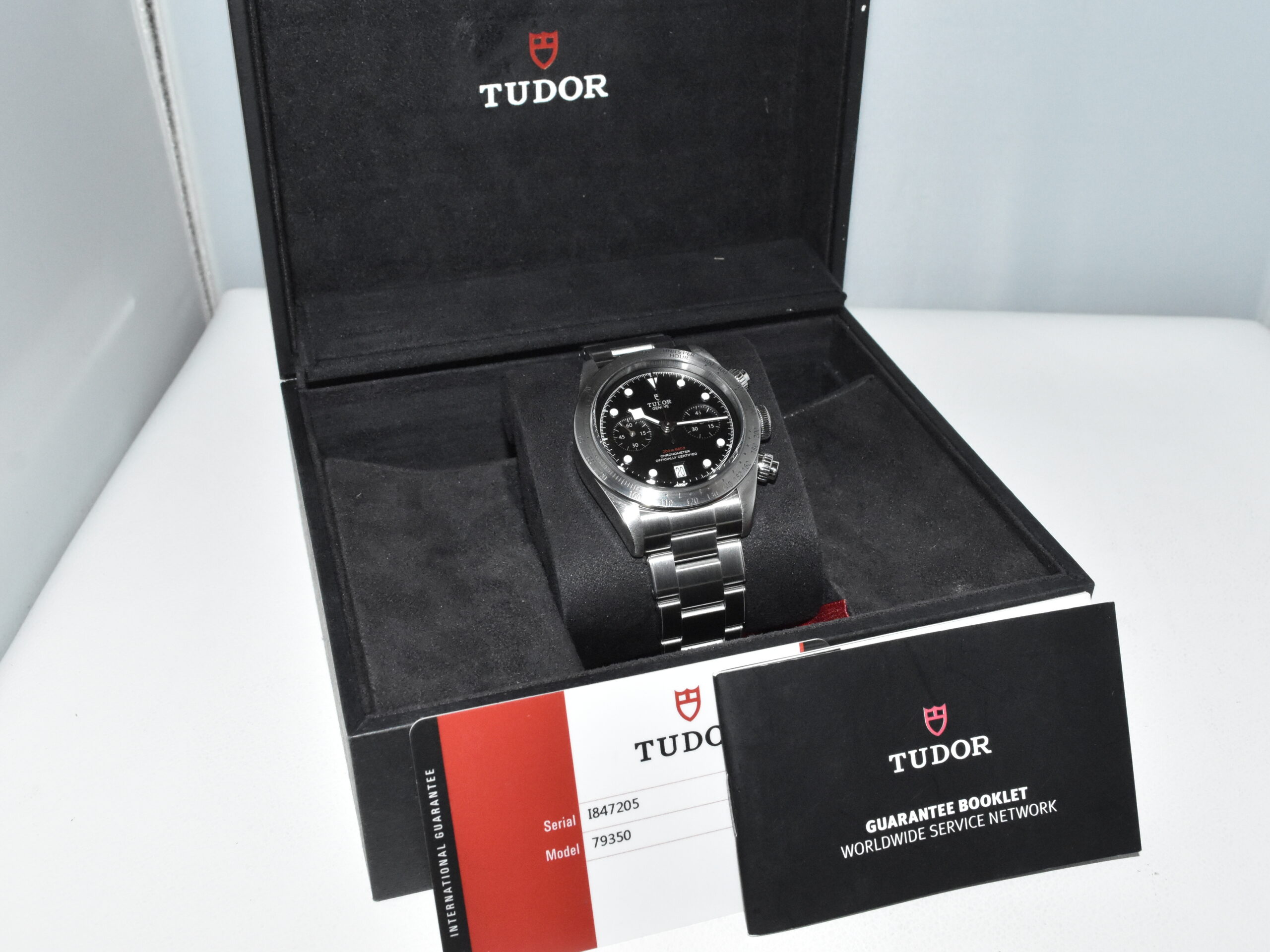 Tudor Black Bay Chronograph 79350, IN FANTASTISCHE STAAT !! Horloge komt met de originele doos en papieren, en alle schakels. Iconisch Tudor heren sporthorloge, perfect voor dagelijks gebruik.